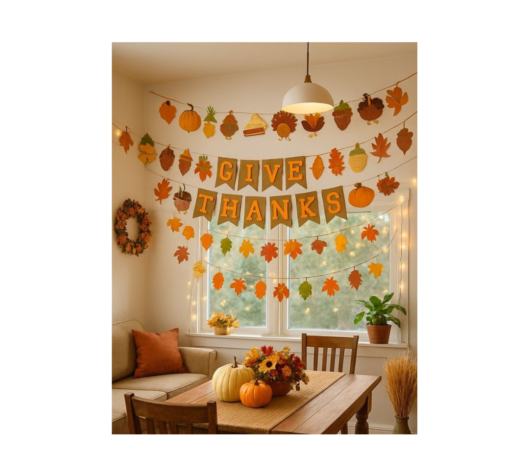 - Floral Thanksgiving motifs and autumn leaf designs for cozy interiors.